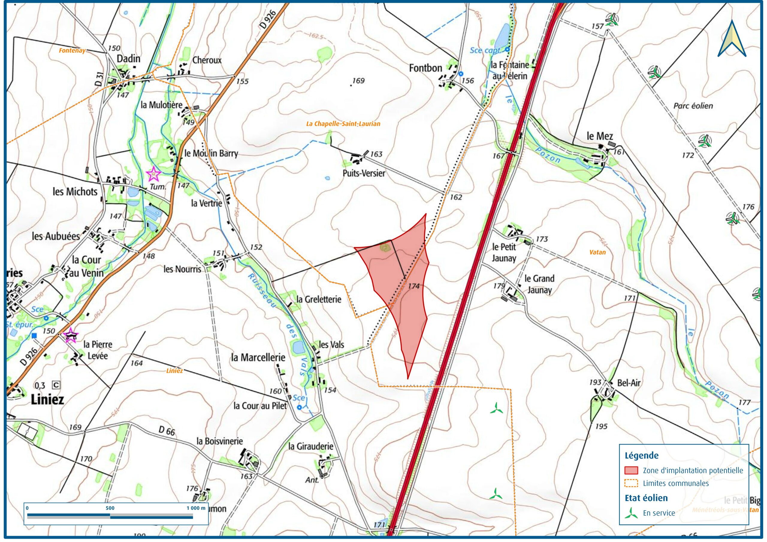 Afin de déterminer la faisabilité d’un projet éolien sur la zone d’étude identifiée, des études de faisabilité sont en cours sur La Chapelle-Saint-Laurian et Vatan. Celles-ci permettent d’identifier les enjeux et contraintes du territoire et de proposer une trame d’implantation en cohérence avec les potentiels impacts d’un parc éolien sur le territoire.